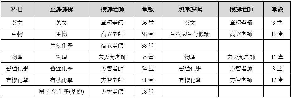 高立老師的講義編排清晰有條理,板書精簡而有效,讓學生不需要花費大量時間抄寫筆記,而能專注於理解和吸收課程內容。他擅長系統化整合,會將生化內容有機地串聯起來,不讓學生死記硬背每個代謝途徑,而是引導學生理解不同系統之間的關聯性。比如在講解蛋白質代謝時,他會回顧之前學過的糖類和脂質代謝,讓學生看到整個代謝網絡的全貌。而在講到DNA複製、轉錄、轉譯這些分子生物學的核心概念時,他會用生動的比喻和實例來說明,讓原本艱澀的理論變得親近易懂。透過結合歷屆試題的練習,有效幫助學生熟悉命題趨勢,並培養靈活運用知識解題的能力。